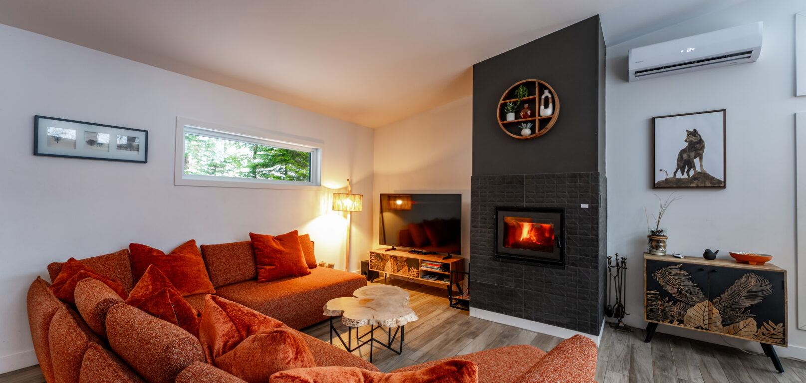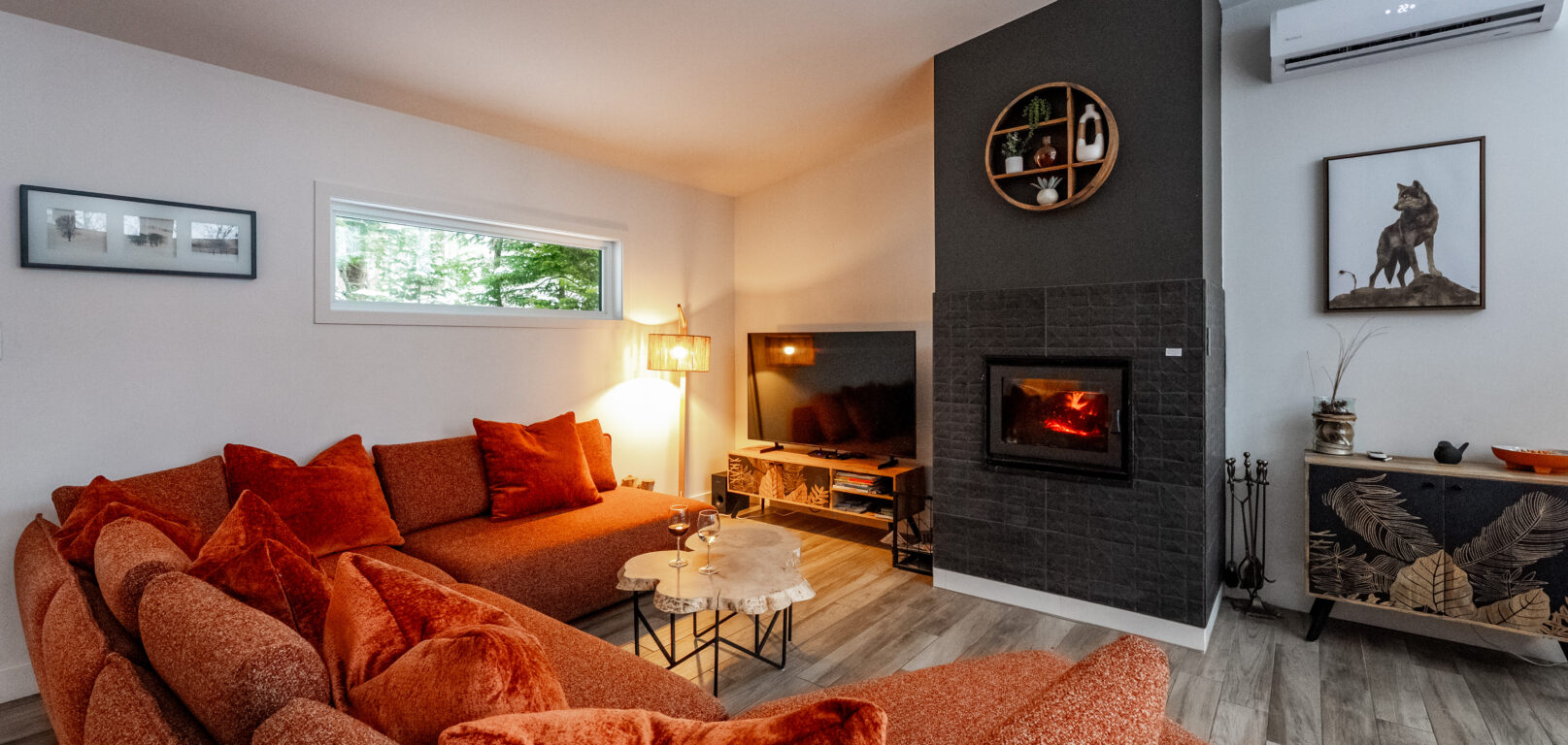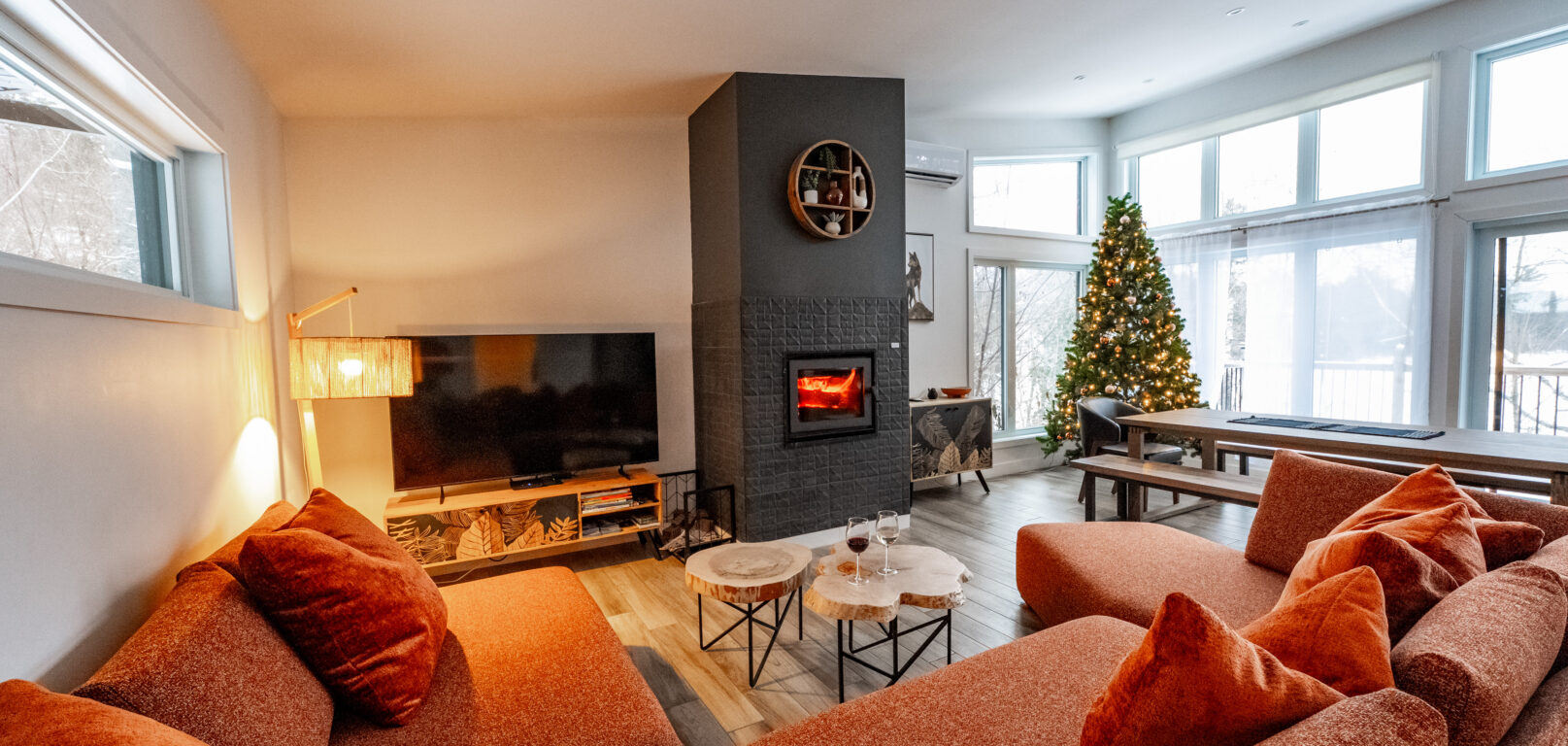 Conseil : le chalet est très bien déneigé l’hiver par notre équipe de maintenance mais comme il est situé dans un domaine en forêt avec des petits chemins en pente, nous vous conseillons d’opter pour un véhicule AWD (4 roues motrices) ou un VUS durant les mois d’hiver. Assurez-vous que votre véhicule soit équipé de pneus neige et d’avoir (au besoin) des Traction-Aid avec vous.
