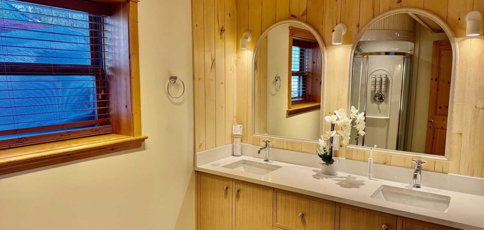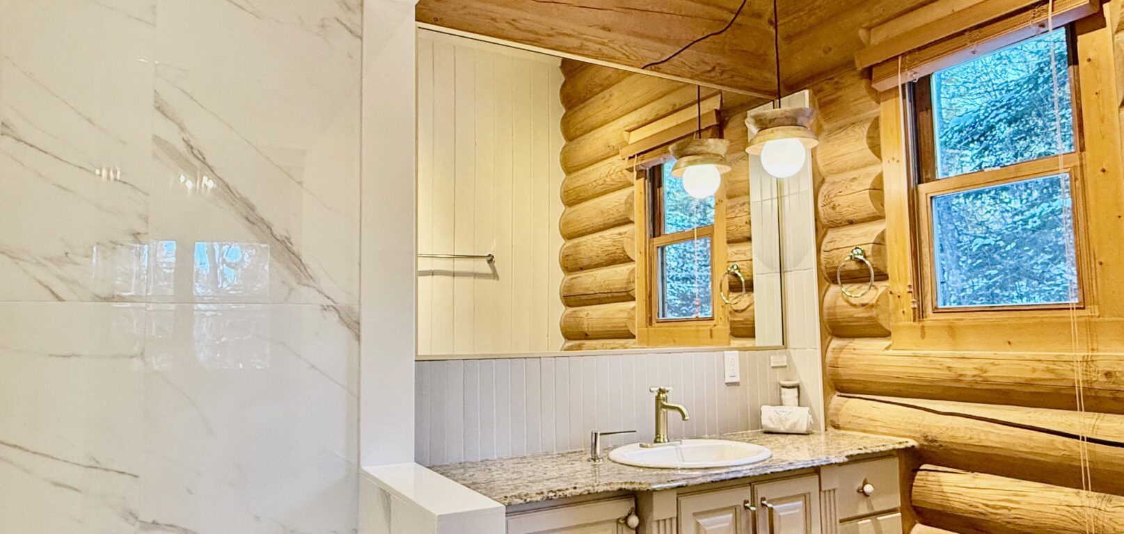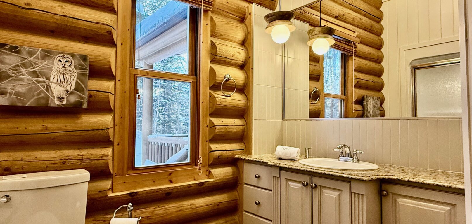Le chalet white wolf est spacieux et tres confortable. Les lits sont moelleux, il y a beaucoup de place pour relaxer et le decor est enchanteur (une belle cote pour glisser avec les enfants). Lorsque nous avons eu un probleme avec une douche, l'equipe a ete tres reactive et est venue rapidement (mais discretement) regler le probleme. Merci egalement pour votre flexibilite face a nos demandes.