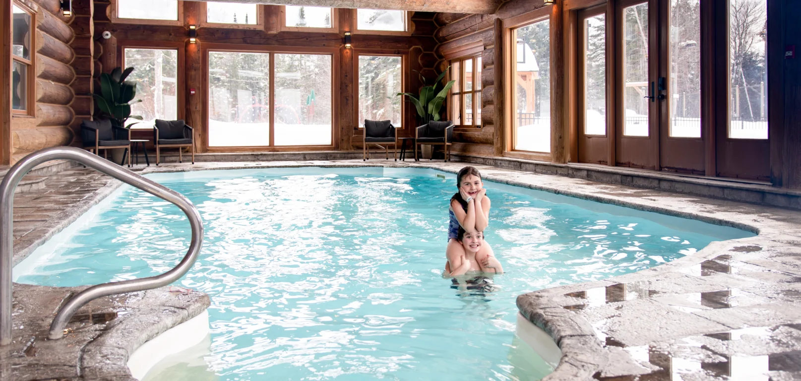 En hiver: salle d’entraînement à la fine pointe, entièrement équipée & piscine intérieure chauffée (tous deux ouverts à l’année), patinoire extérieure (dispo selon conditions météo, patins fournis), prêt de raquettes pour la randonnée en forêt.