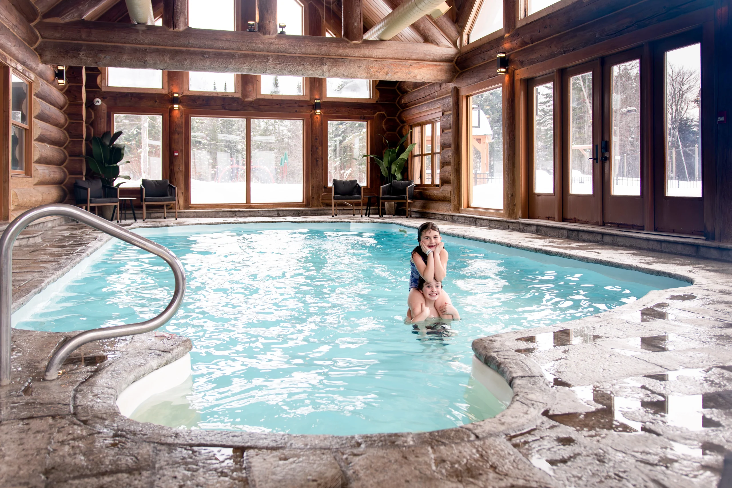 En hiver: salle d’entraînement à la fine pointe, entièrement équipée & piscine intérieure chauffée (tous deux ouverts à l’année), patinoire extérieure (dispo selon conditions météo, patins fournis), prêt de raquettes pour la randonnée en forêt.