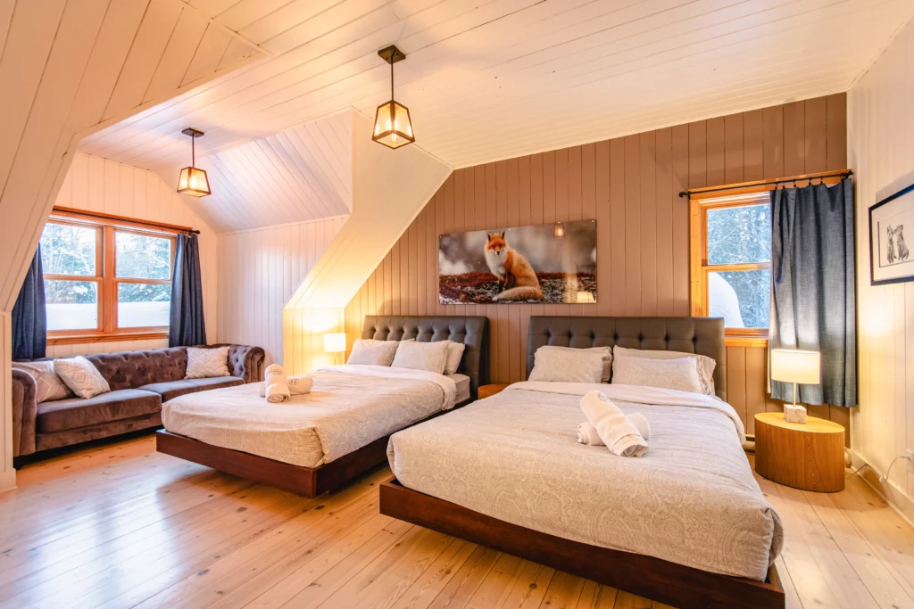 We discovered Silver Fox chalet in summer of 2020 and decided to book a few dates in 2021. This property is beautiful inside and out. This is a log cottage which it makes it unique. The decor is modern yet carefully curated. It has a beautiful pool, a barrel sauna and spa. The cottage is surrounded by nature and it's ultra peaceful. It's only 1 hour drive from Montreal. Highly recommend this cottage, if you can find availability, since it books so fast :)