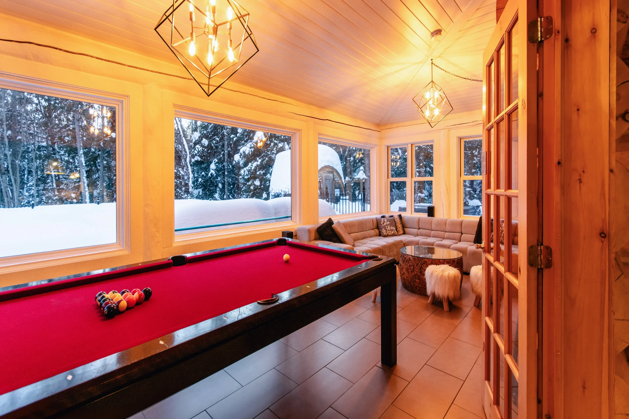 Nous avons loué ce magnifique chalet pour 5 nuits. Le chalet est très propre, grand et entouré d'une belle nature. Les lits sont confortables. Nous avons profité de la piscine privée, du sauna et du bain tourbillon qui sont bien entretenus. En soirée, les enfants ont bien apprécié les guimauves autour du feu. C'est bien de pouvoir transformer la table pour manger en table de billard.