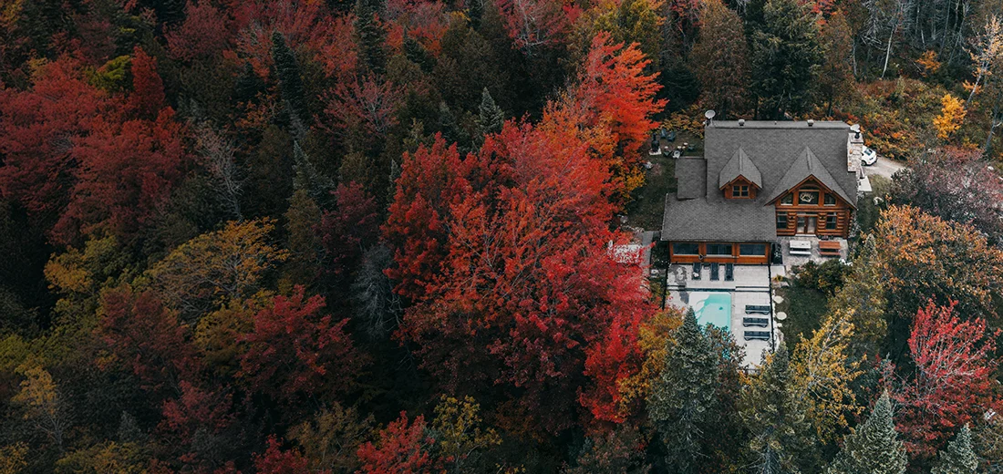 Exterior view of the all-renovated log cabin with outdoor pool Chalet Silver Fox | Luxury chalets in Laurentains | Chalets Zenya