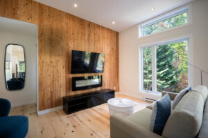 Just 1 hour and 15 minutes from Montreal, Chalet Utopia is a recently renovated contemporary retreat with exclusive access to an eco-friendly, motor-free lake. Flooded with natural light, this haven combines modern comfort and timeless charm.
