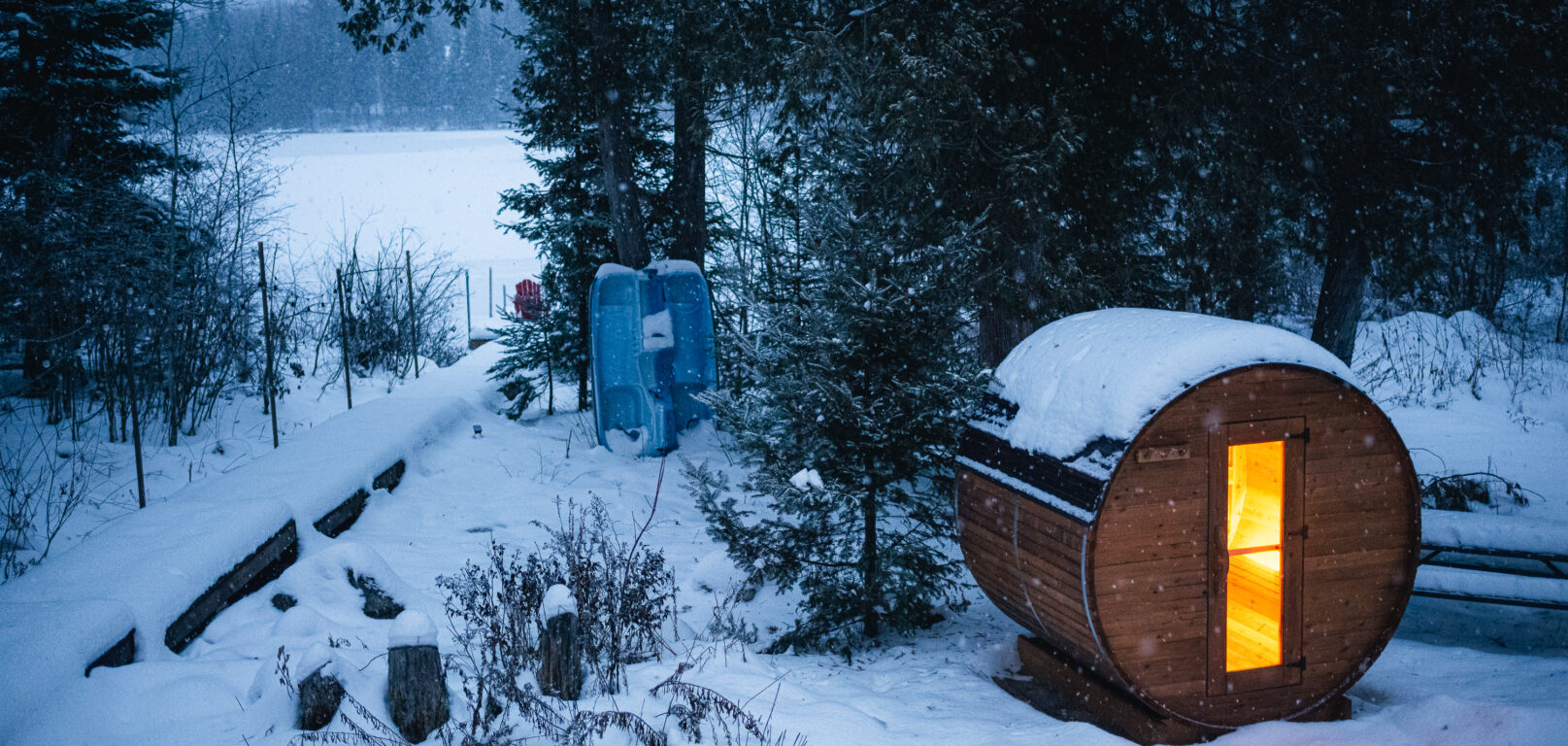 The back door of the cottage opens onto a charming backyard featuring an outdoor fireplace (firewood provided — just bring your own newspaper and kindling), a 6-person spa, and a dry sauna for 4 persons, all accessible year-round. Upstairs, the 3-season screened veranda serves as a summer dining space for 8–10 guests, while a propane gas BBQ is available and functional throughout the year.