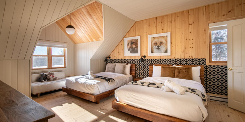 I recently organized a three-day strategic planning session for my architecture team at the GOLDEN BEAR chalet, and it turned out to be an exceptional choice. The chalet's spacious design comfortably accommodated our team of six staying overnight, with room for up to twenty during the day. The 3 large rooms provided perfect individual workspaces for focused brainstorming sessions. This setup was perfect for our team’s productivity and privacy. Post-work, the chalet’s location in the Laurentians offered us a range of outdoor activities. Some team members enjoyed snowmobile rides, while others indulged in the serene experience of cross-country skiing within the park where the cottage is located. No need to drive far away.